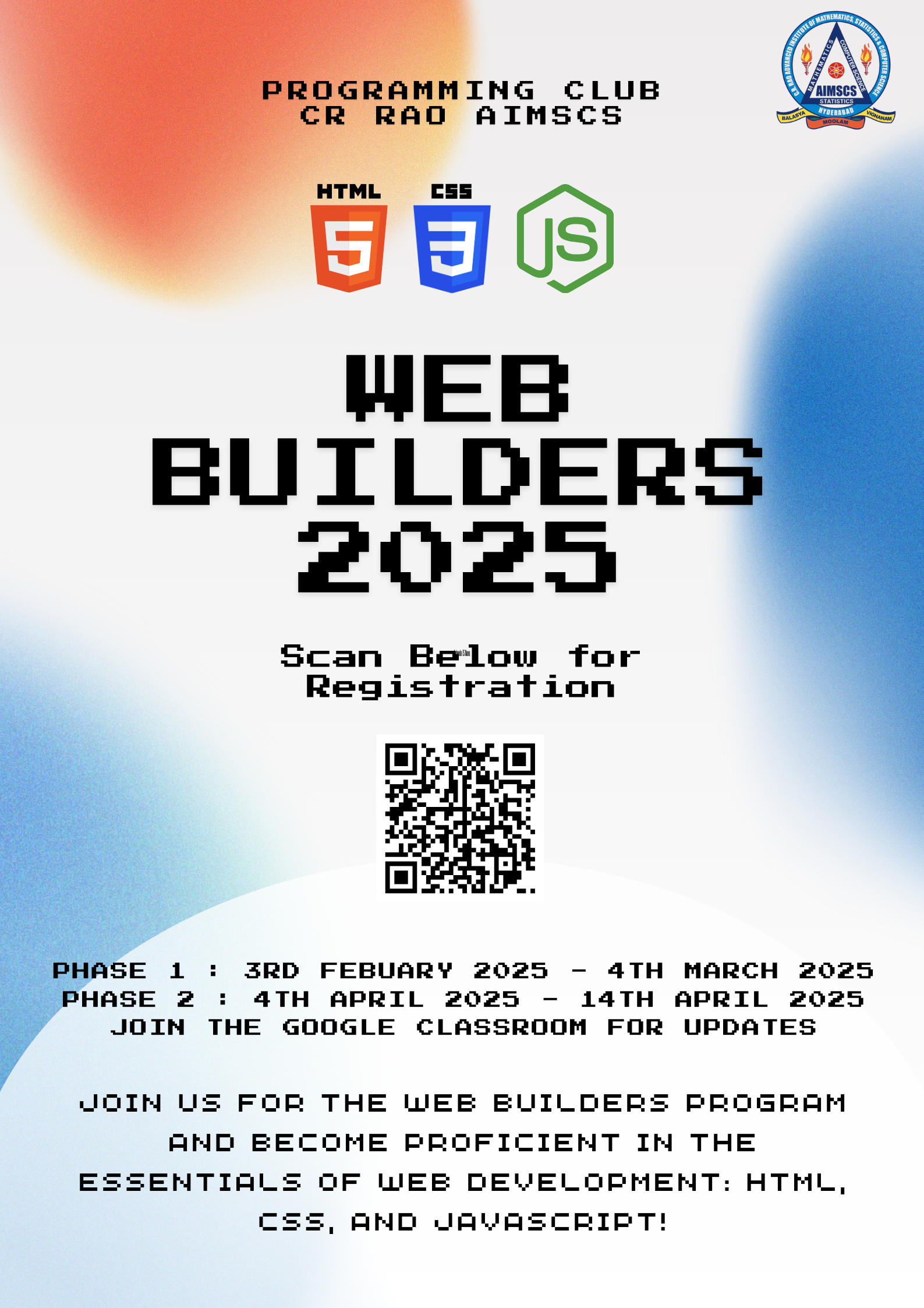 The Programming Club at CR Rao AIMSCS is a community of students enthusiastic about various aspects of programming. This club aims to develop a programming culture in the student community and help students explore and enhance their programming skills.